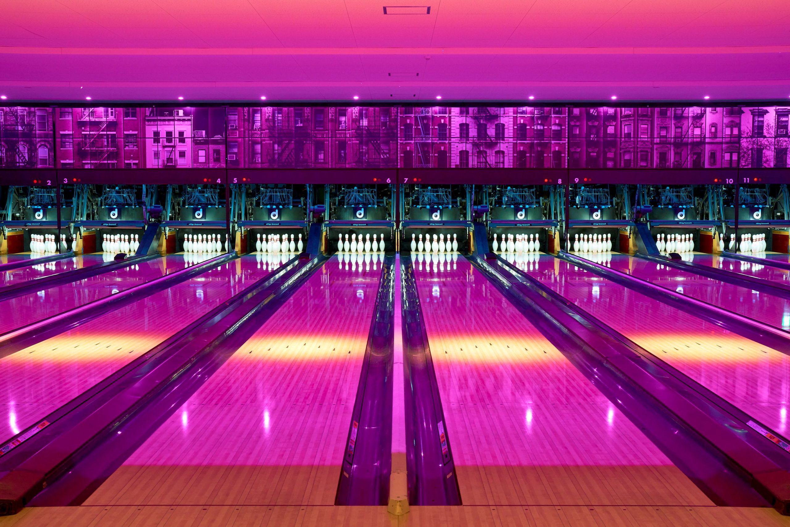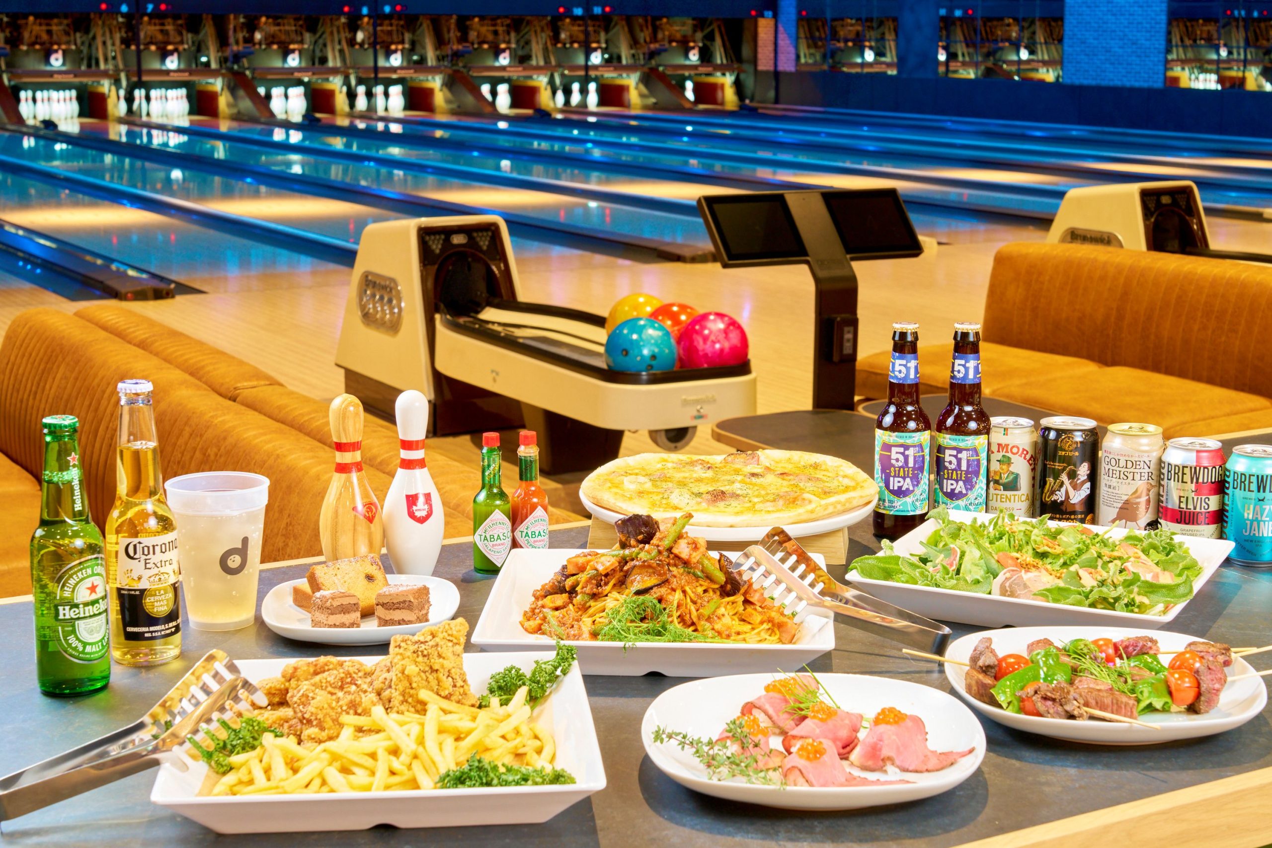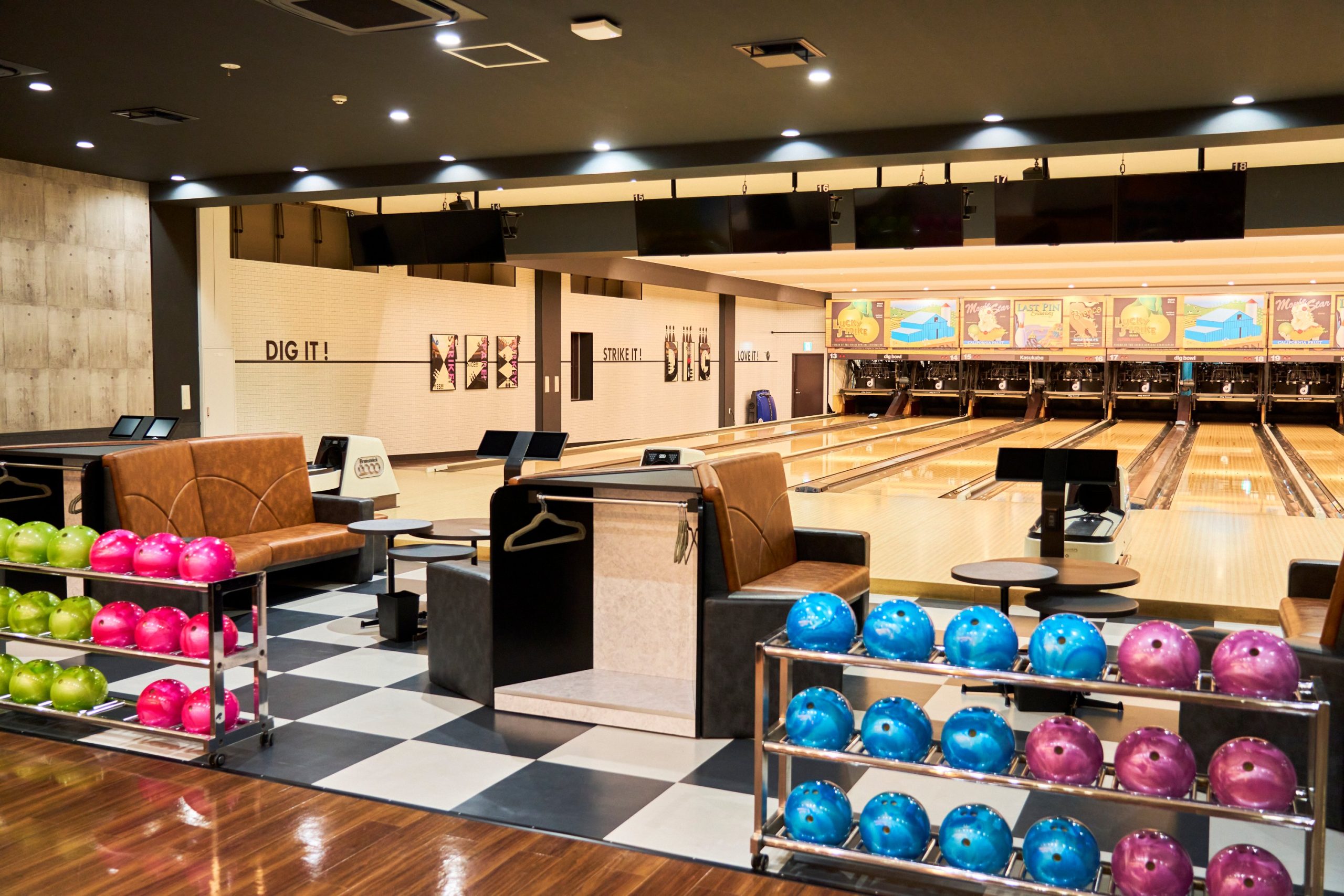 2025年に外装や内装、照明、設備をリニューアル。店舗は3階建てで、1階はパーティールーム、2階(12レーン)・3階(12レーン)のボウリング場で、2階にはピザやフライドポテト、ソフトドリンクやアルコールなどを提供するカフェバーカウンターも備える。 ボウリング場には、キッズ向けに投球補助台やノンガターレーンを備え、5ポンドからの軽量ボールも用意する。懇親会などのイベントにも利用可能。ボウリングのインストラクターが常駐。パーティールームは、着席50人まで収容。新年会・忘年会・歓送迎会などのほか、会議、カルチャー教室、ワークショップ、物販イベントなどの利用に対応する。ボウリング場は2階・3階で違う雰囲気の内装となっています。 |