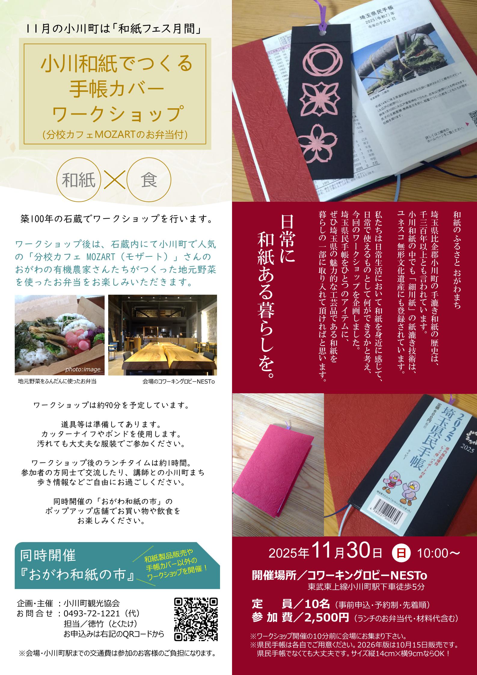 さらに、ワークショップ後は、小川町で人気の分校カフェ「MOZART(モザート)」のお弁当ランチ付ですので、みなさんでランチしながら交流しましょう。