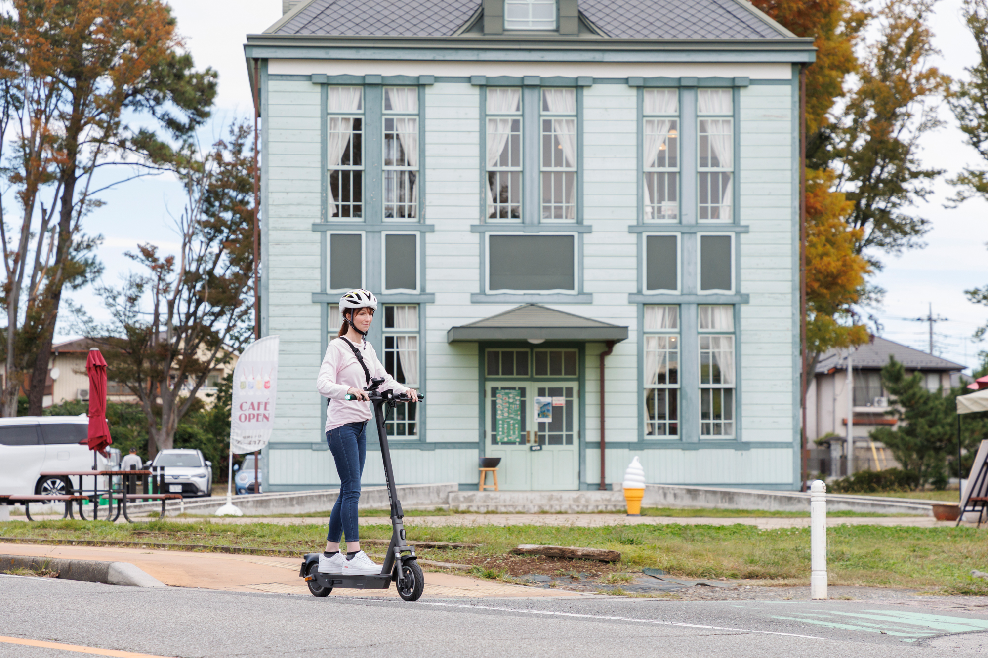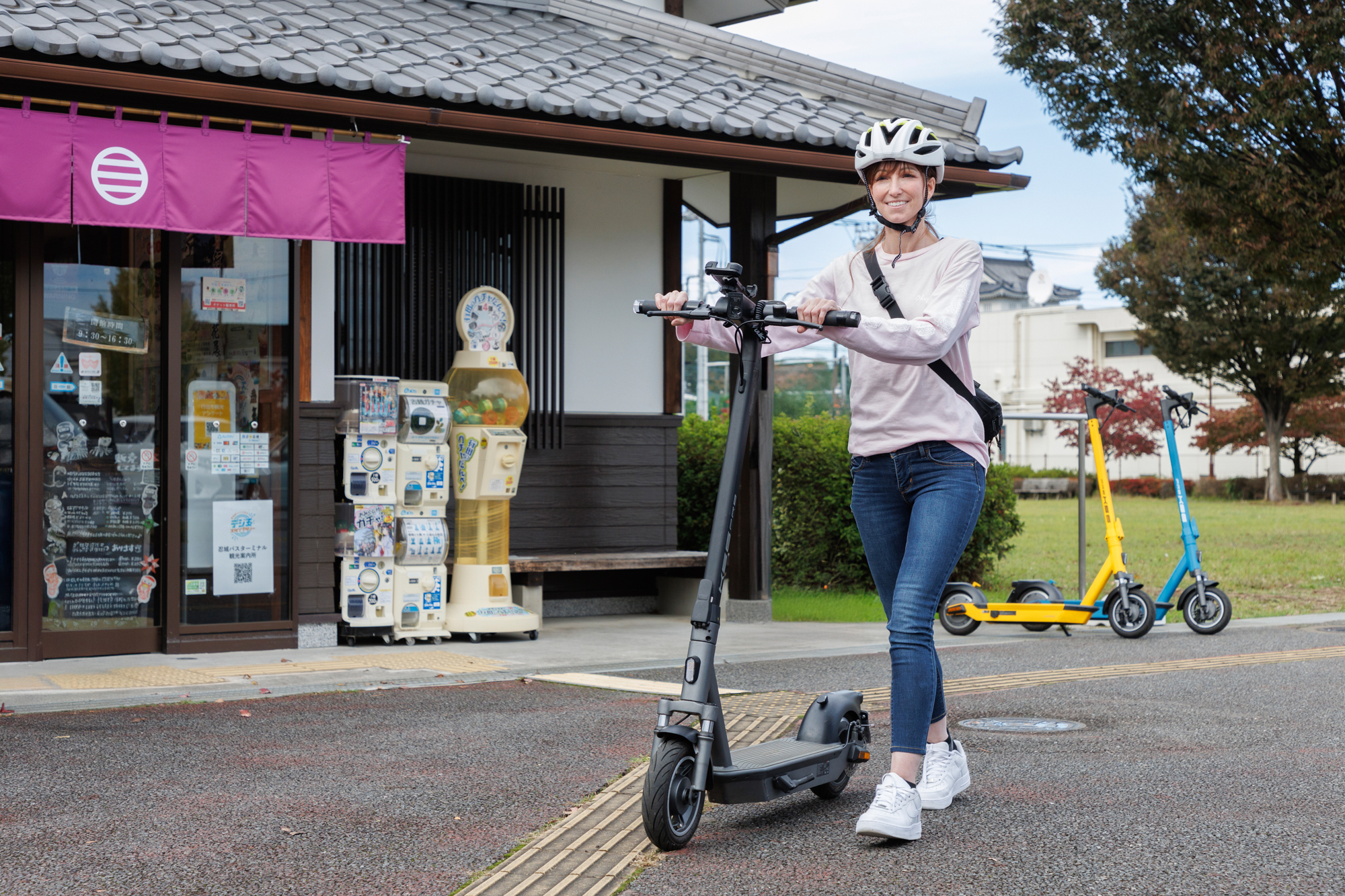 忍城下を『電動キックボード』で巡る歴史探訪ガイドツアー~ 忍城や足袋蔵などの日本遺産構成資産や花手水で有名な行田八幡神社などの人気観光スポットを、地域ガイドによる説明を聞きながら、電動キックボードに乗って“移動そのものを楽しむ”新感覚体験型ツアー。