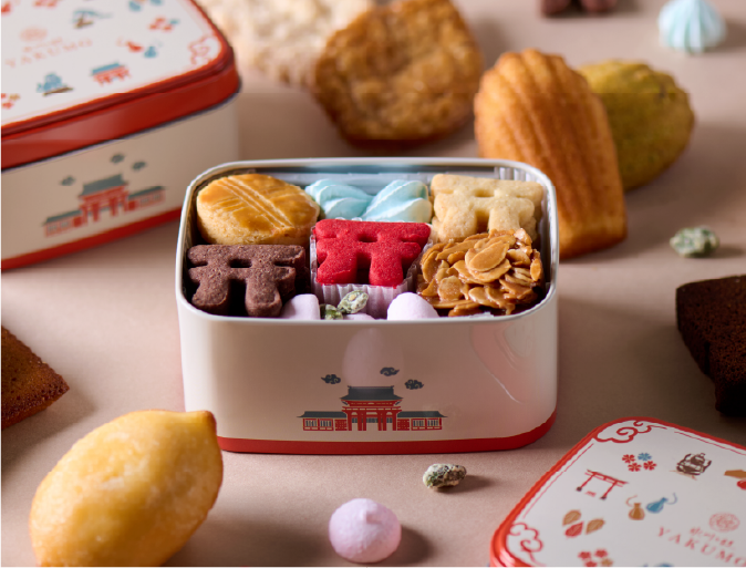 氷川参道に並ぶ3つの鳥居をモチーフにした「ベリー」「チョコ」「チーズ」の3種類のサブレをはじめ、ミニガレットやフロランタンも詰め合わせた、エキュート大宮限定商品の『氷川のクッキー缶』は、お土産や贈り物に大変人気の商品です。